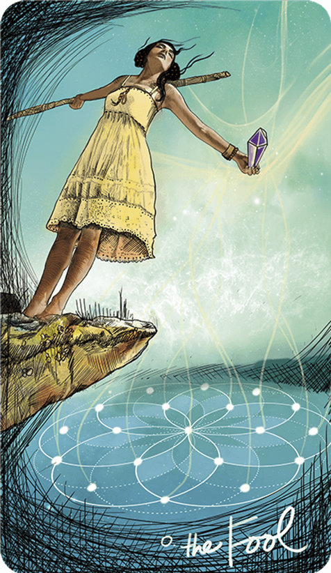 The Fool enters this world to remind us to live and love fiercely while we are here. She stumbles like a twig in the wind—sometimes tangling in everyone’s hair, sometimes landing lightly as a dancer on a lily pad. Whether she makes us laugh, delights us, or infuriates us, she asks us to stop and notice.